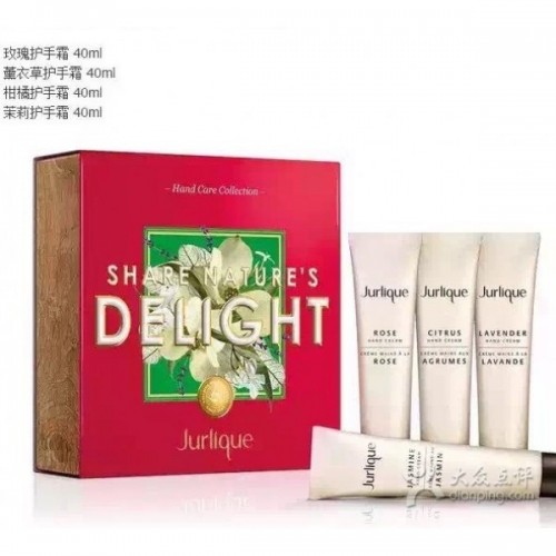 - 型 号: Jurlique茱莉蔻玫瑰系列护手霜礼盒 此款护手霜礼盒包括玫瑰味护手霜 柑橘味护手霜 薰衣草味护手霜 茉莉花味护手霜
