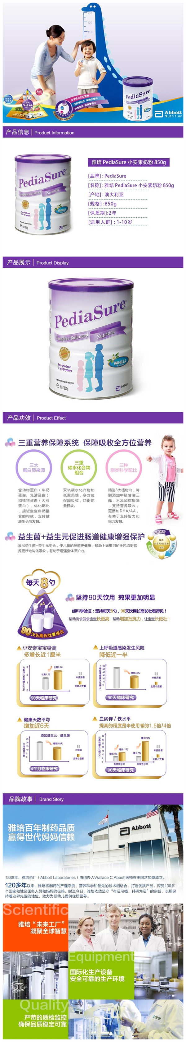 标签 PediaSure 雅培小安素儿童奶粉 1-10岁 850g
