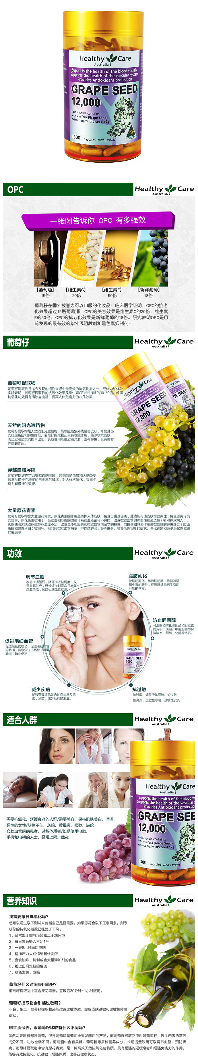 - 型 号: Healthy Care 葡萄籽胶囊 12000mg 300粒
