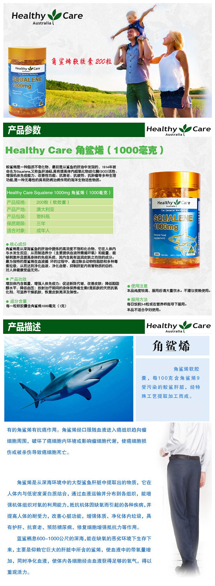 - 型 号: Healthy Care 澳洲角鲨烯软胶囊 200粒