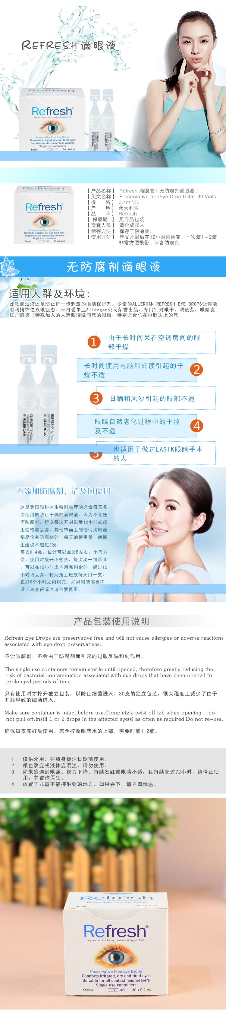 标签 澳洲Refresh 眼药水抗疲劳不含防腐剂 隐形眼镜者适用 30*0.4ml
