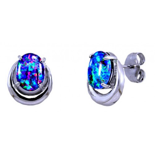 Genuine Australian Triplet Opal earrings set in rhodium plated sterling silver.
