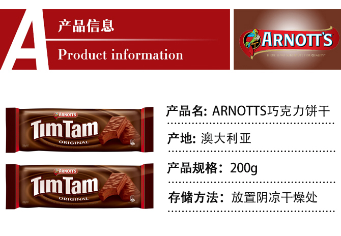 - 型 号: Arnotts Tim Tam Chocolate Original 200g