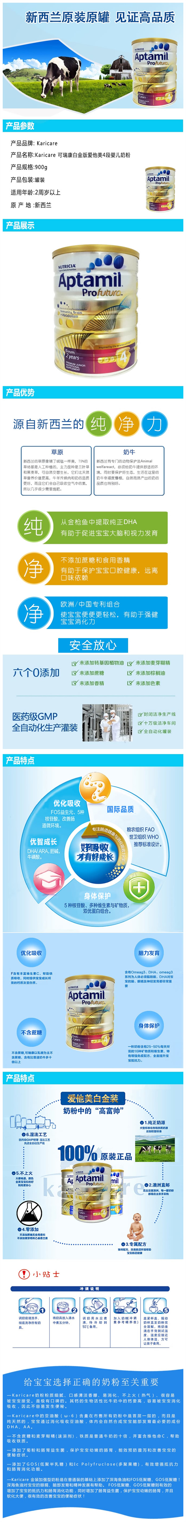 - 型 号: Karicare 可瑞康 爱他美白金装婴儿奶粉4段 900g 白金加强版