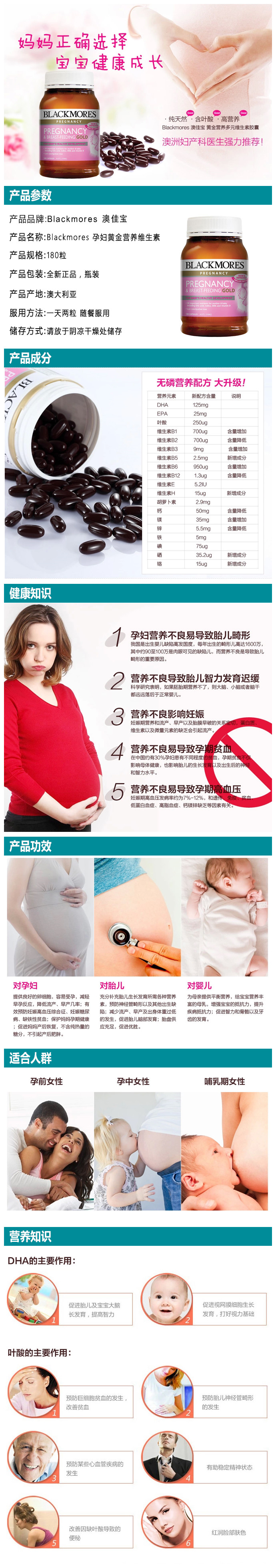 • 型 号: Blackmores 澳佳宝 黄金孕妇综合维生素孕期/哺乳期 180粒