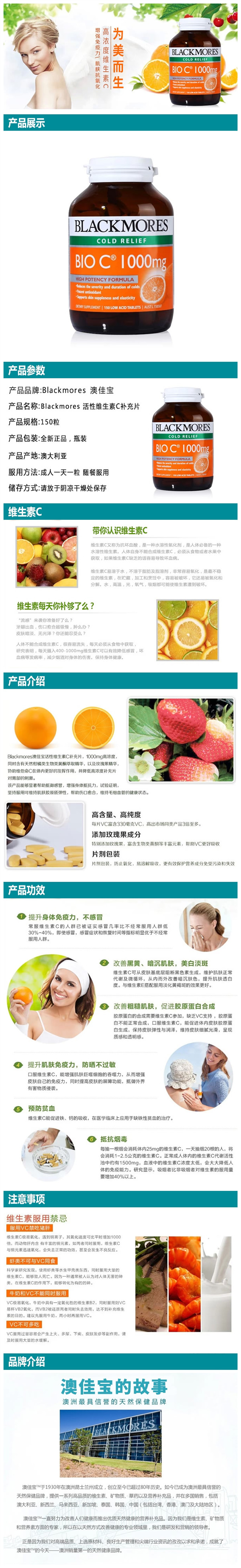 - 型 号: Blackmores 澳佳宝 天然维生素C Bio C 1000mg 150粒